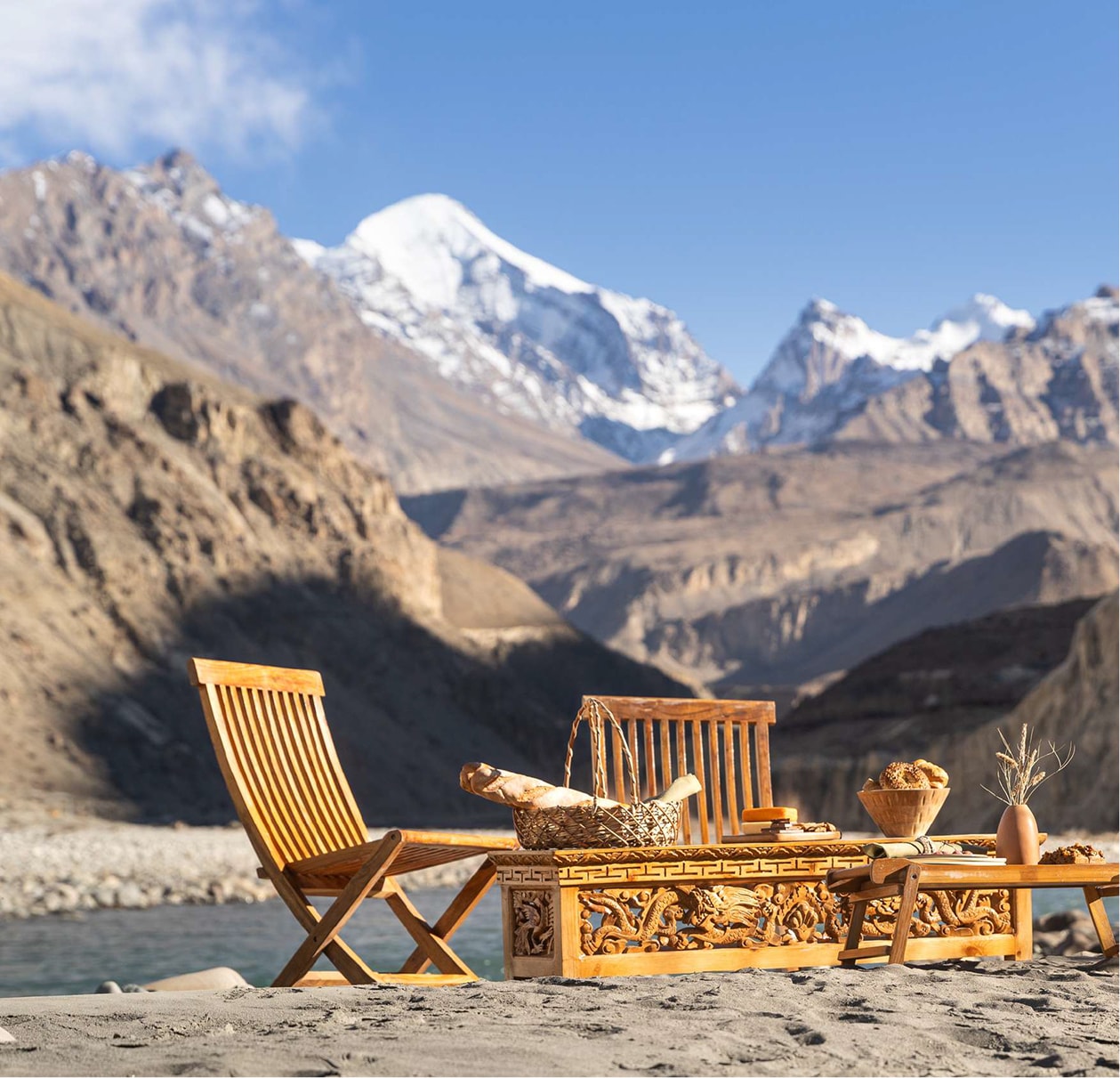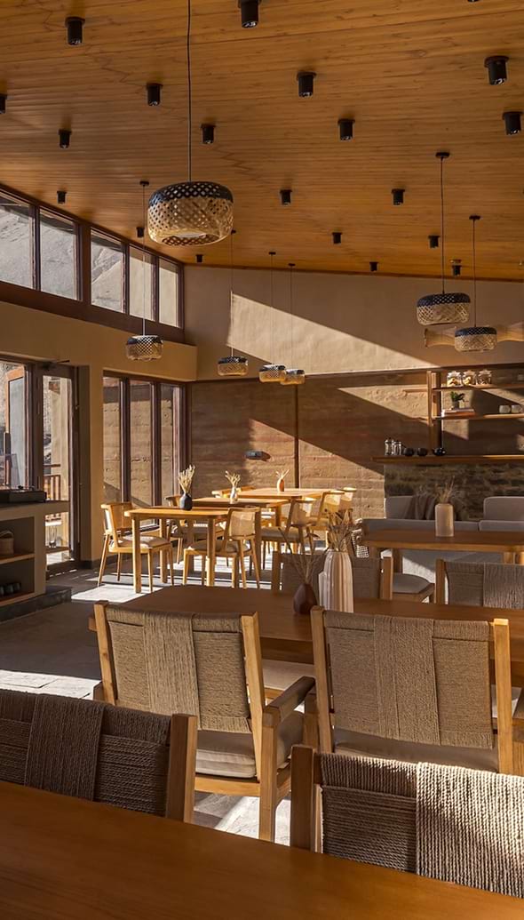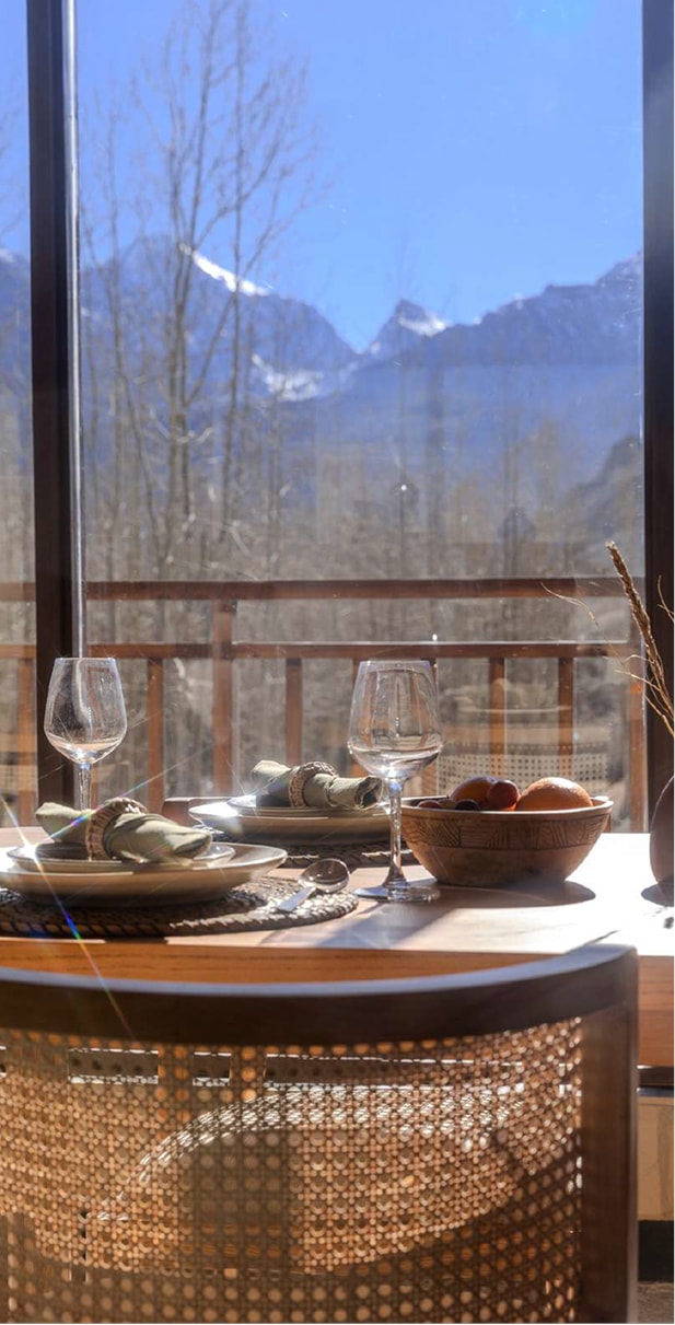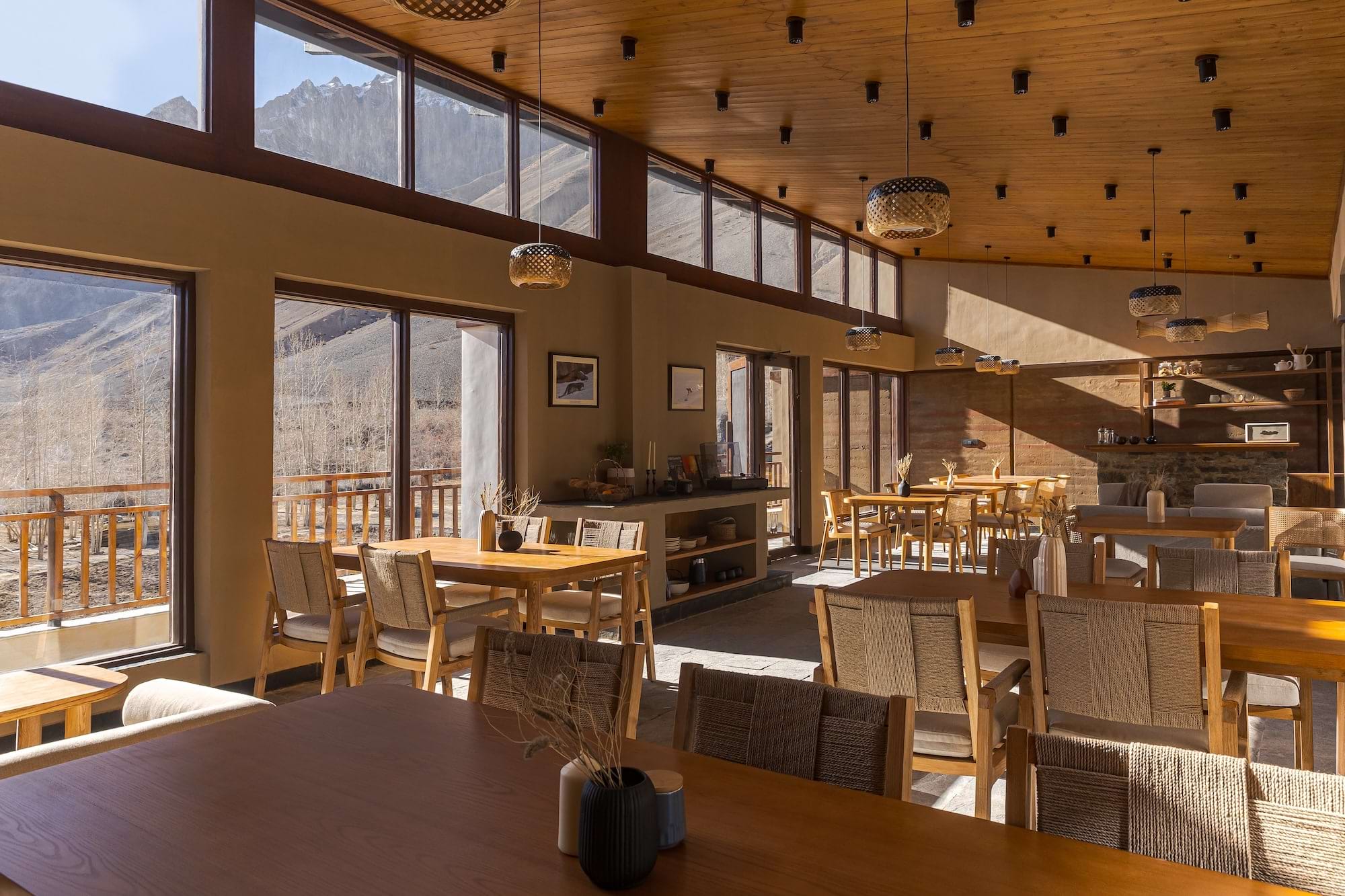 Bathed in natural light from high ceilings and expansive windows, the space opens to uninterrupted views of the majestic Manirang Massif transforming every meal into a moment connected to the mountains. With its coffee and beverage bar, thoughtful mix of dining settings, and inviting lounge sofas, Tshera is a place to slow down, leaf through a book, unwind, and simply take in the quiet of the valley.